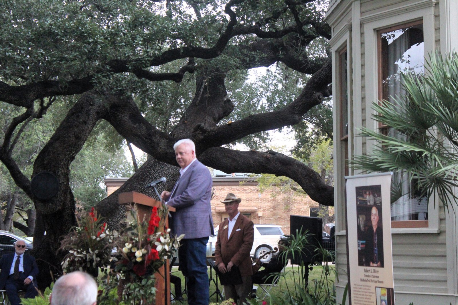 CUERO, TEXAS —  The grounds of the Proctor-Green House were filled with friends, neighbors, and guests who traveled from near and far to honor Robert Leon Oliver. Cowboys and cowgirls in boots and hats stood alongside doctors, lawyers, artists, authors, business owners, neighbors, and lifelong friends. Some came from across town, others from across the state, all drawn to the same place by a shared connection to Robert Leon Oliver—a man whose generosity and vision helped shape the cultural heart of Cuero. Founder, benefactor, and guiding force behind the Chisholm Trail Heritage Museum, Robert’s legacy was woven into every corner of the gathering.