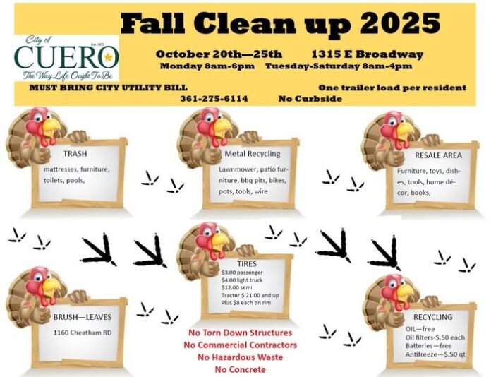 HomeEventsCity of Cuero Fall Clean up 2025 EventsNewsTRENDING City of Cuero Fall Clean up 2025 By cueroonlinenews October 4, 2025 0 0 Share FacebookTwitterPinterestWhatsAppEmail Share FacebookTwitterPinterestWhatsAppEmail Previous articleManhunt Underway After Woman Fatally Shot in InezNext articleSenator Lois Kolkhorst to Speak in Yoakum: All Constituents Welcome cueroonlinenewshttps://cueroonlinenews.com RELATED ARTICLES Events Christmas on Grand Brings Holiday Magic to Downtown Yoakum December 5, 2025 News Cuero Fire Department Welcomes Two New Members December 5, 2025 Lifestyle Chamber of Commerce December Business of the Month: Donut Palace December 5, 2025 LEAVE A REPLY Cancel reply Comment: Please enter your comment! Name:* Please enter your name here Email:* You have entered an incorrect email address! Please enter your email address here Website: Save my name, email, and website in this browser for the next time I comment. Most Popular Christmas on Grand Brings Holiday Magic to Downtown Yoakum December 5, 2025 Cuero Fire Department Welcomes Two New Members December 5, 2025 Chamber of Commerce December Business of the Month: Donut Palace December 5, 2025 Robert (Bob) Clyde Putnam – June 12, 1918 to Nov 21, 2025 (107) December 5, 2025 Load more Recent Comments cueroonlinenews on Emergency Responders Called to Head-On Collision on Highway 72 West Lacey Vaughn on 11-Year-Old Confesses to Killing Nixon-Smiley Neighbor at Age 7 Mauser on Emergency Responders Called to Head-On Collision on Highway 72 West H.F. on 11-Year-Old Confesses to Killing Nixon-Smiley Neighbor at Age 7 cueroonlinenews on Law requires three-day delay before patients receive pathology or genetic findings online—aimed at protecting emotional readiness Shenna Page on Barbara Fay Audilet – October 22, 1951 to September 17, 2025 (73) Caryle Thompson on Ugh, Here We Go Again—It’s Allergy Season in Texas but then Again when isn’t it! Sadie L. on The Bill That Ends Anonymity: Why ‘Big Beautiful’ Might Be the Most Dangerous Law in America Mr. Denson on Cuero Residents Face Intimidation as Police Wrongly Target a Minor in Burglary Investigation Sadie on Juneteenth in Cuero: Remembering Freedom, Reflecting on Recognition Annette M on Cuero Residents Face Intimidation as Police Wrongly Target a Minor in Burglary Investigation Mari Light on DeWitt County Investigator Bethany Hobbs Graduates from FBI National Academy Gerald G. on Cuero Residents Face Intimidation as Police Wrongly Target a Minor in Burglary Investigation Anonymous on Cuero Residents Face Intimidation as Police Wrongly Target a Minor in Burglary Investigation Tabitha West on Cuero Residents Face Intimidation as Police Wrongly Target a Minor in Burglary Investigation Beverly Rains on Cuero Residents Face Intimidation as Police Wrongly Target a Minor in Burglary Investigation Chris on Cuero Residents Face Intimidation as Police Wrongly Target a Minor in Burglary Investigation Genni White on Cuero Residents Face Intimidation as Police Wrongly Target a Minor in Burglary Investigation Jordan T. Rowe on Cuero Residents Face Intimidation as Police Wrongly Target a Minor in Burglary Investigation Ashlynn on Stir Soda Shoppe Expands: A New Location Coming to Cuero! ispbruf on Culinary Arts Students Shine in Annual Pizza Competition Victoria Johnson and Larry Pierce on Doris Jean Schlenker, – August 26, 1937 to May 25, 2025 (87) “They Wouldn’t Die” – The Mind of Bryan Haynes | Dailywise on Private: “They Wouldn’t Die” – The Mind of Bryan Haynes Swearing In Ceremony for Justice of the Peace, Precinct One Lindsay R. Ruppert | Dailywise on Swearing In Ceremony for Justice of the Peace, Precinct One Lindsay R. Ruppert CHS Senior Sarah Rodriguez Honored for Academic and Athletic Excellence | Dailywise on CHS Senior Sarah Rodriguez Honored for Academic and Athletic Excellence Unveiling the West” Art Exhibition Brings Western American Fine Art to Cuero | Dailywise on Unveiling the West” Art Exhibition Brings Western American Fine Art to Cuero CHS Culinary Students Earn Prestigious ServSafe Certification | Dailywise on CHS Culinary Students Earn Prestigious ServSafe Certification Cuero High School Celebrates 2025 Top Ten Graduates | Dailywise on Cuero High School Celebrates 2025 Top Ten Graduates Cuero’s Inaugural Mayor’s Youth Council Honored for Completion | Dailywise on Cuero’s Inaugural Mayor’s Youth Council Honored for Completion St. Michael’s Students Embark on an Educational Journey to Washington, D.C. | Dailywise on St. Michael’s Students Embark on an Educational Journey to Washington, D.C. Dewitt Poth & Son Announces Store Closure in Goliad, Plans New Location in Cuero | Dailywise on Dewitt Poth & Son Announces Store Closure in Goliad, Plans New Location in Cuero Exciting News from Ruby’s Roost Coffee Co.! | Dailywise on Exciting News from Ruby’s Roost Coffee Co.! Shining Stars: High School Dance Team Members Honored for Excellence and Spirit | Dailywise on Shining Stars: High School Dance Team Members Honored for Excellence and Spirit Yorktown’s Brycen Allman Earns 1st Runner-Up Title at Miss Texas Teen USA 2025 | Dailywise on Yorktown’s Brycen Allman Earns 1st Runner-Up Title at Miss Texas Teen USA 2025 Cuero ISD Superintendent Clarifies Transfer Policies Amid Misinformation | Dailywise on Cuero ISD Superintendent Clarifies Transfer Policies Amid Misinformation Cuero Volunteer Fire Department Fundraiser: Get Involved | Dailywise on Cuero Volunteer Fire Department Fundraiser: Get Involved Cuero Regional Hospital Honors Medical Laboratory Professionals | Dailywise on Cuero Regional Hospital Honors Medical Laboratory Professionals Cuero Candidate Forum Draws Packed House | Dailywise on Cuero Candidate Forum Draws Packed House Cuero Residents Gather to Shape the Future at Community Workshop | Dailywise on Cuero Residents Gather to Shape the Future at Community Workshop Keep Cuero Beautiful Hosts Successful Cleanup 