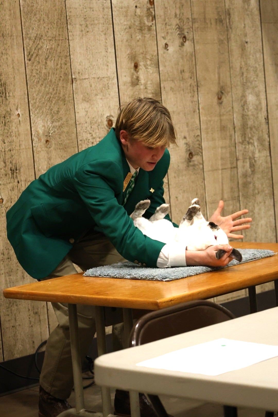 DeWitt County Senior Ambassador Caleb Keller contributed additional instruction, sharing resources to help members deepen their understanding of rabbit care. Keller also demonstrated showmanship techniques, walking attendees through the process of presenting a rabbit to a judge in the show ring.