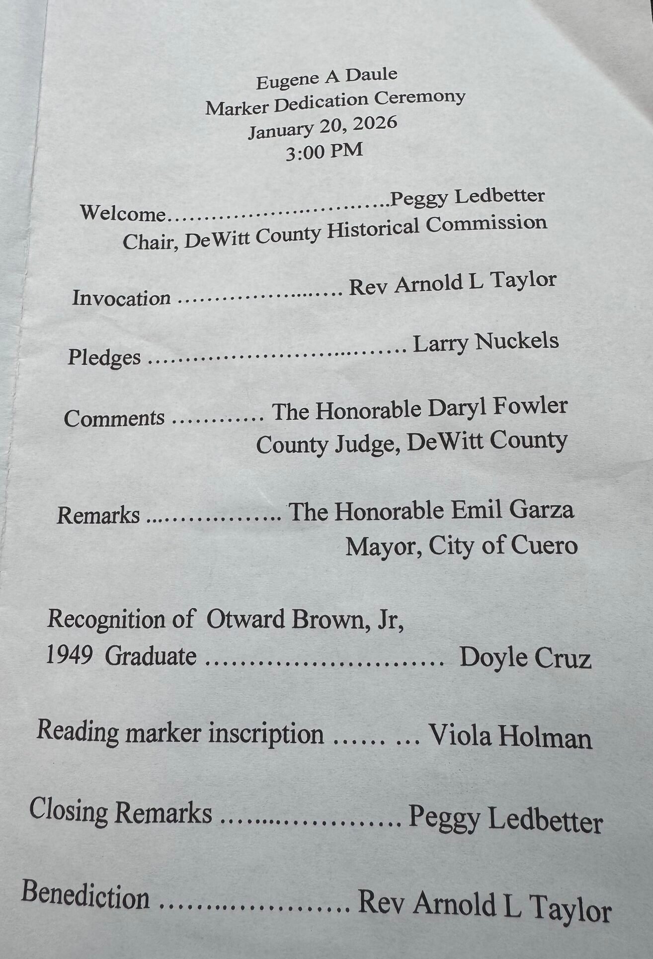 The dedication concluded with a call to continue preserving and sharing Cuero’s rich African American history, ensuring that stories like Daule’s remain visible and valued for years to come.