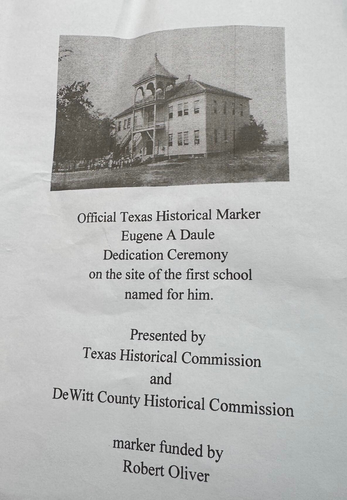 Historic Marker Dedicated to Eugene A. Daule at Former School Site in Cuero