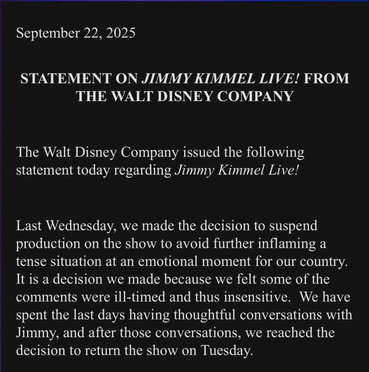 The controversy has reignited broader conversations about the role of media companies in political discourse, and whether corporate decisions are being shaped more by pressure than principle. For now, Jimmy Kimmel Live! is back—but the debate over speech, accountability, and influence is far from over.