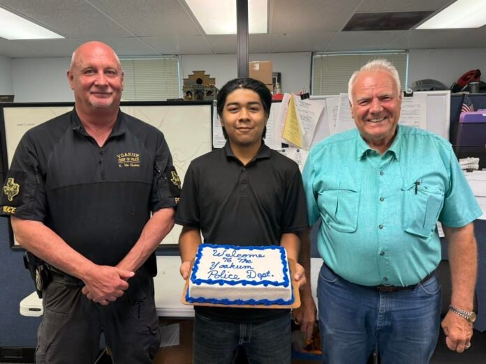 The Yoakum Police Department celebrated Fred Rosales’ first day as Animal Control Officer with cake and warm smiles. Pictured here, Fred cuts into a delicious symbol of new beginnings—serving the community with heart and dedication.