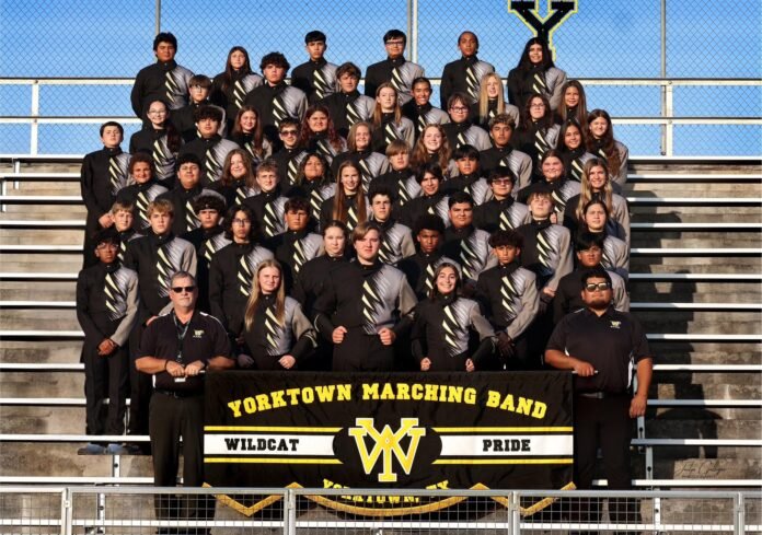 YORKTOWN, TX — The Yorktown Wildcat Band struck a proud pose this week as they unveiled their brand-new uniforms for the 2025–26 season, marking a fresh chapter in the school’s musical legacy. Gathered in formation for an official photo, the band radiated energy, unity, and unmistakable Wildcat pride.